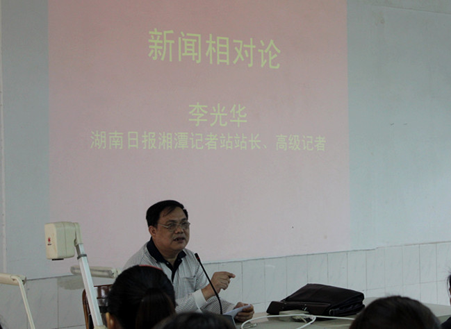 李先生强调新闻是一种阶级意识形态,是具有中国特色马克思主义的新闻感知,并着重围绕什么是新闻相对论,如何形成新闻相对论,以及新闻相对论在实践中的运用三个方面展开。凭借着丰富的实践经验,扎实的理论基础,李先生以具体实例为载体阐发了因新闻内容、媒体、报道切入点等的不同引发新闻相对论。并简单精辟地讲述了新闻相对论的形成的原因——满足执政党的执政需求;媒体本身生存与发展的需求;受众媒体的新闻消费需求。最后,通过与现场几位同学的分析探讨,指出了新闻新定义——新闻是契合时空需求的事实报道的进步性。其观点新颖独特,让人耳目一新。