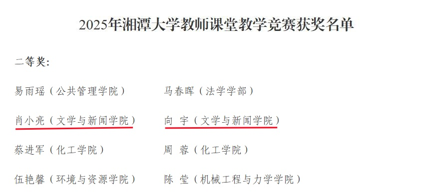 近日,2025年成人短视频 教师课堂教学竞赛圆满结束,成人短视频 肖小亮、向宇两位老师凭借扎实专业功底与优质课堂设计荣获二等奖,尽显成人短视频 教师优良教学风貌。