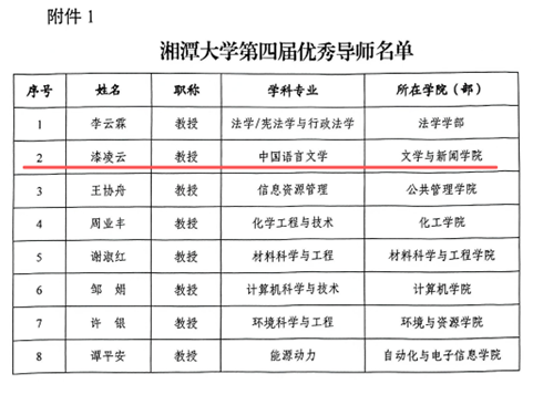 4月16日,学校发布《关于公布成人短视频 第四届优秀导师及优秀导师团队名单的通知》,成人短视频 漆凌云教授荣获“优秀导师”称号。